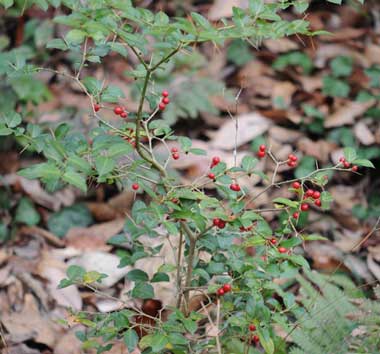 2016年3月20日 和歌山県新宮市熊野川町 熊野古道を歩いていて見つけました。道中時々それらしい低木を見ていたのですが、確信は持てませんでした。しかし、この場所で休憩した時、まず長いとげが、そして探すと見覚えのある赤い実が見つかったのです。かなりうれしかったです。 トップページへ |