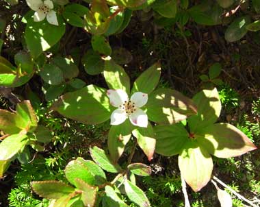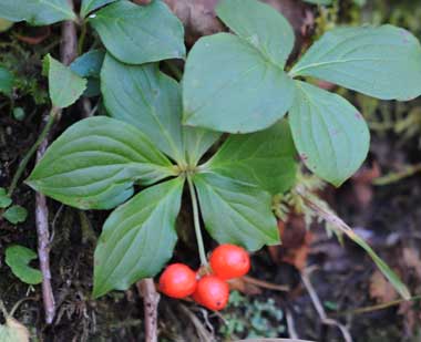 | ■科、属 | ミズキ科 (ゴゼンタチバナ属) | ■学名 | Chamaepericlymenum canadense |