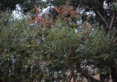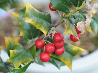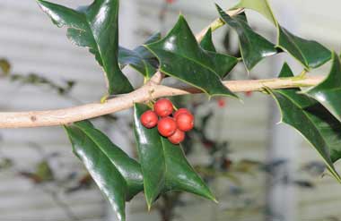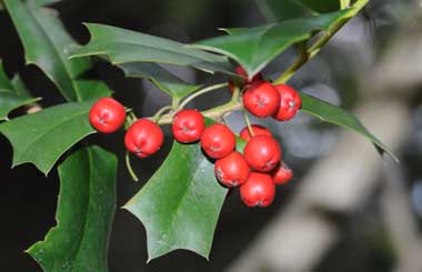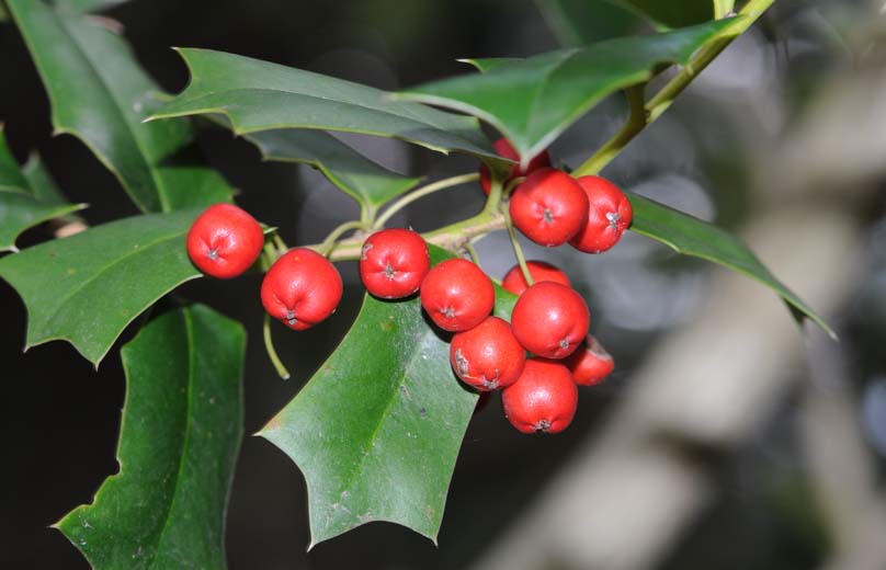 2016年1月16日 静岡市葵区 見事に赤い実が多数ついていて、深緑のとげとげしい葉との対照が見事です。 トップページへ |