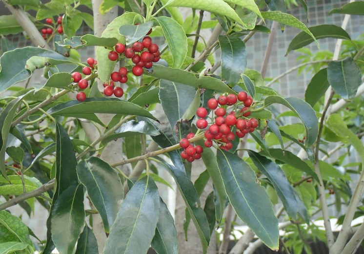 2016年11月17日 大阪市 植栽 都会のホテルの庭に数本のナナミノキが植えてあり、この1本だけが赤い実をつけていました。他は雄木なのかもしれません。 トップページへ |