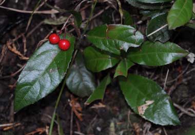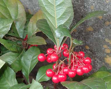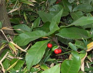 | ■雌雄 | 雌雄同株 | ■特記事項 | 古典園芸植物。万葉集にうたわれた。根を生薬「紫金牛」といい利尿、咳止めや解毒。 |