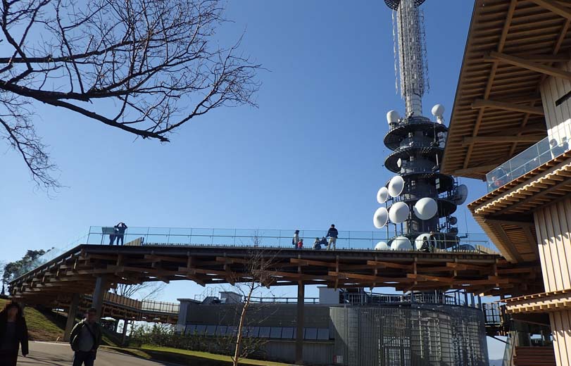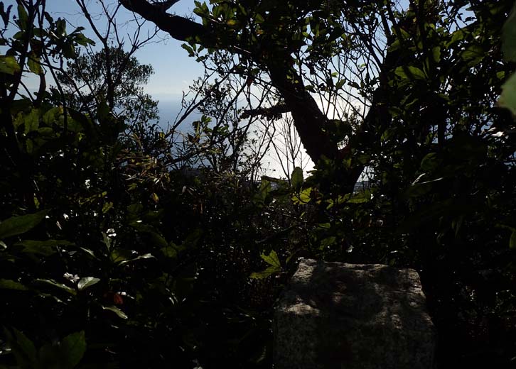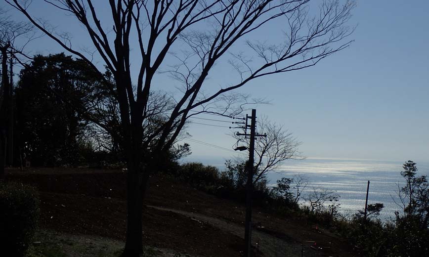 今日(2018年11月24日)の富士山をいろんな視野角(広角から望遠)でご覧ください。天気が悪くなるたびに富士山上部は雪で白くなるのですが、だんだんと雪が風で飛ばされて黒く戻っていきます。今はまあまあきれいですね。![]() 富士山と清水港(2018-11-24)、クリックで大きな画像へ ![]() 富士山と清水港、三保半島(2018-11-24)、クリックで大きな画像へ ![]() 富士山アップ(2018-11-24)、クリックで大きな画像へ 夢テラスの中です。設計者のの思いというポスターがテラスの壁に貼ってあり、それをほぼそのまま引用します:「日本平夢テラスは八角形をしていますが、これは八方図というダイヤグラムに基づいて設計しており、富士山を最高の方位で見えるようにしています。また、日本平夢テラスは木を大事にしようという考え方から、静岡のヒノキをふんだんに使用し、周りの自然景観に配慮しています。昔からある構造である木組みを使っていますので、下から見上げてもらえるとその美しさを感じることができます」 夢テラスはガラス張りのシンボル施設と、デジタルテレビ塔を取り囲む展望回廊からなっていて、それぞれが八角形です。 ![]() 夢テラスの中(2018-11-24)、クリックで大きな画像へ正面窓に富士山が見えますか ![]() 夢テラスの中から見上げたところ(2018-11-24)、クリックで大きな画像へ ![]() 展望回廊とシンボル施設(2018-11-24)、クリックで大きな画像へ ![]() デジタルテレビ塔と夢テラス(2018-11-24)、クリックで大きな画像へ テレビがデジタル化される前には各局の塔が立っていたが、デジタル化と同時に1本に集約されたようだ。 ところで、この展望回廊の一角に、案内板が数枚掲示されています。その一枚がこのページのトップにあるものですが、他に、非常に気になる掲示板があります。それは、徳富蘇峰が昭和10年(1935年)に選んだ日本平の4か所の景勝地に名前を付け、その碑が今でも立っているというのです。4つは吟望台(ぎんぼうだい)、鍾秀台(しょうしゅうだい)、超然台(ちょうねんだい)、望嶽台(ぼうがくだい)です。似たようなものが複数ある、しかも由緒正しい、、、となるとコレクター魂に火が付きました。ネットで調べているとその一つの超然台は、これまで諦めていた有度山三角点とほぼ同じところにあるというのです。しかもヤマレコやヤマップで多くの方々の記録がアップされています。ちなみに私は登った山に三角点があれば、それを踏むか触るかザックを置くかして写真を撮ることにしています。行き方が分からず諦めていた三角点もヤマップがあればなんとか行けそうな気がしてきました。これで決まりです。昨日登ったばかりですが、連登することにしました。 ![]() 徳富蘇峰が選んだ日本平の4か所の景勝地の案内板(2018-11-24)、クリックで大きな画像へ 吟望台、鍾秀台、超然台、望嶽台 2018年11月25日。今日も快晴です。まずは三角点を目指します。いつもの駐車場から、旧パークウェイに曲がり、しばらく行くと確かにテレビ塔があるところよりも高そうなところが見えます。しばらく行くと右に入る細い道があり、ヤマップの記録をたより最後は藪漕ぎに近い状態で進むと、ブルーシートが掛けてあり、これが目印でした。そこに三角点がありました。ここで気を抜かずに海に向かって左5m程度のところに、超然台と書かれた碑が立っていました。どちらもすぐ急峻な崖の上です。確かに一般人が来れるようにするにはかなりのお金をかけないと危ないでしょう。 ![]() 藪の中から見つけたブルーシートと三角点(2018-11-25) ![]() 三角点と表示棒(2018-11-25) 棒には「大切にしましょう三角点」と書かれている。三角点はネットで見た画像に比べてかなり埋まっているようだ。 ![]() 超然台の碑(2018-11-25) 完全に雑木に囲まれている。 ![]() 超然台の碑と海(2018-11-25)、クリックで大きな画像へ 碑は崖のすぐそばに建てられているので、雑木に囲まれていても何とか海が見える。 ![]() 超然台から見た崖(2018-11-25)、クリックで大きな画像へ 雑木に邪魔されて分かりにくいが、薄茶色に見えているのは崩れている崖。 いったん昨日堪能した夢テラスに戻ります。ここにもう一つの碑、吟望台があります。すでに何度も撮っていますが改めて撮りなおしました。ただし今日は人が大勢います。 ![]() 吟望台の碑(2018-11-25) 富士山がきれいな日は大勢の人が写真を撮る名所です。顔はモザイク処理しています。 ![]() 有度山、吟望台の碑、と富士山(2018-11-25)、クリックで大きな画像へ ここに来てこの素晴らしい風景を眺めることができるとすごくうれしくなります。右に見える小山が先ほど登った三角点と超然台がある有度山山頂になります。 4つの碑のうち、もう1つ見られるか心配だったのが、吟望台のすぐそばにあるという鍾秀台の碑です。近くにあって遠い理由は立ち入り禁止だからです。ヤマレコの報告などでは、藪を無理やり進んだ、などと書いてあります。また、今は展望回廊ができていますが、その周辺はまだ工事