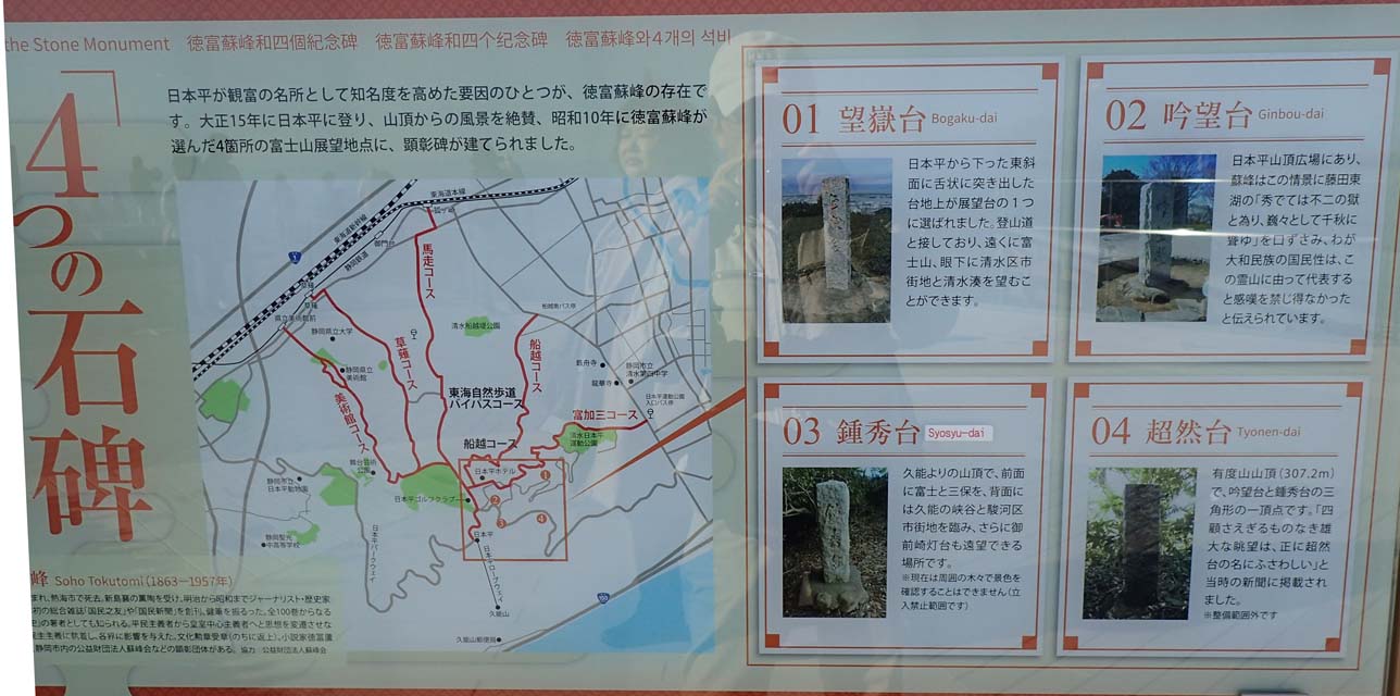 静岡県 日本平 富士山、夢テラスと徳富蘇峰の4つの石碑 |