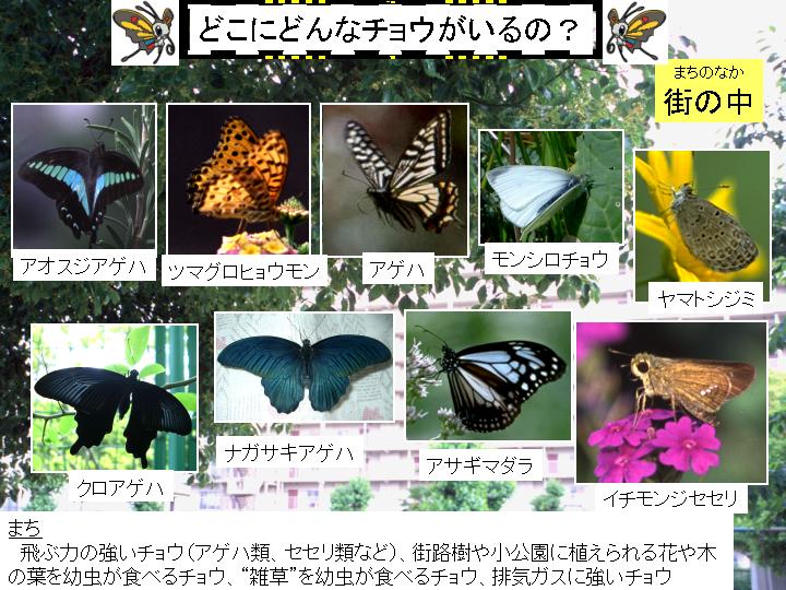 | スライド4 | どこにどんなチョウがいるの? 街の中 |