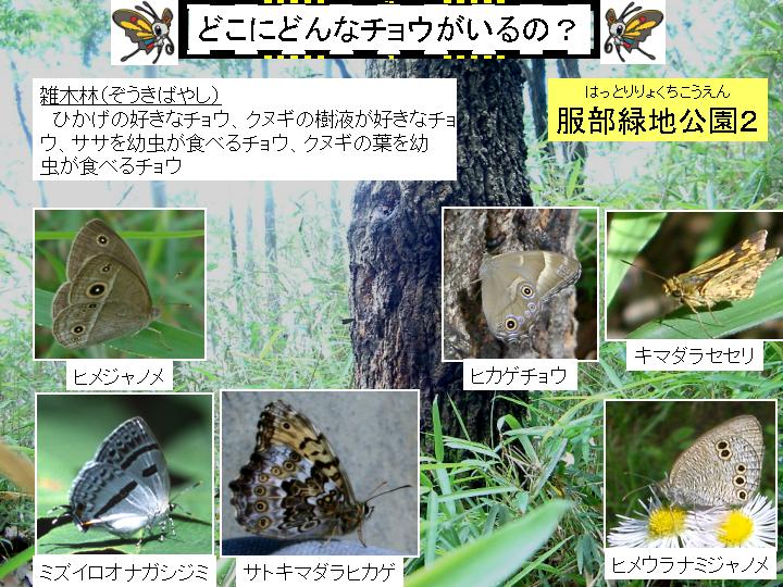 | スライド7 | どこにどんなチョウがいるの? 服部緑地公園2 |