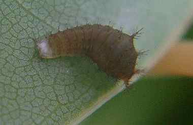 2002年5月12日 大阪市淀川区 少し成長した1齢幼虫。太った? トップページへ |