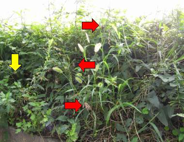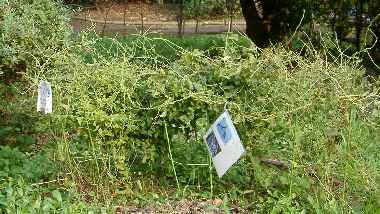 生息環境(ウマノスズクサ) 2003年8月30日 大阪府吹田市 このように敷地の一角に保護されています。 トップページへ |