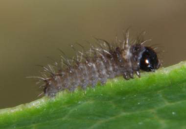 ホソオチョウの幼虫(孵化直後の1齢、2mm)