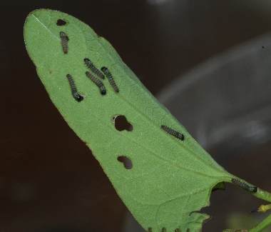 2008年10月18日 08:00amごろ 大阪市淀川区十三 産 大阪市淀川区 飼育 孵化直後に葉辺を歩いています。卵殻も付いていた葉も食べません。卵殻を食べないのはギフチョウと同じですね。 トップページへ |