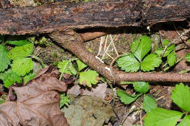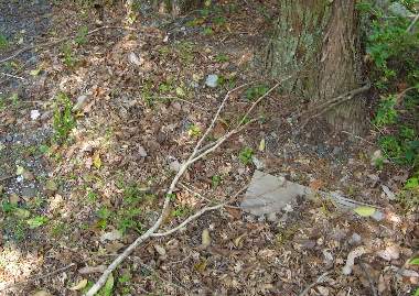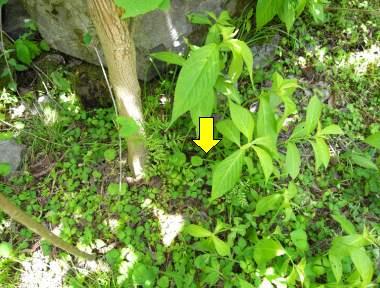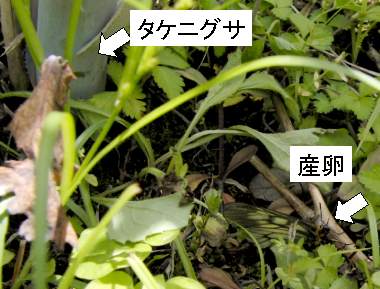 (参考) 産卵と環境 2008年6月1日 兵庫県中西部 上記に示した場所から5mぐらい離れたところです。この日は薄曇りだったのですが、産卵を見たときにはほぼ快晴になりました。12時から12時半ぐらいに産卵しました。今回の2回の産卵の観察の共通項は、・日が高い日中に行なう、・立木や高い草の根元に行なう、・枝に産み付ける、・枝は低い草の中にある、・産み付ける場所は宙に浮いていて下部に産み付ける、・母蝶は歩いて産卵場所を探す、というものです。常に日陰になるとは限りませんが湿度は高いところです。伝聞ですがムラサキケマンが近くにあることを母蝶は気にしないようです。 トップページへ |