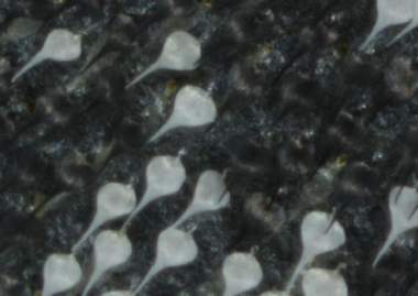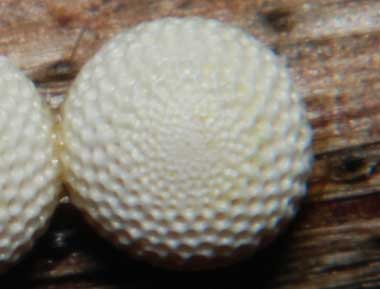 (参考) 産卵と環境 2008年6月1日 兵庫県中西部 産卵を2回見ただけですが、共通の特徴があります。卵は蝶にしては非常に大きく、直径約1.5mmです。知人のI氏とM氏に無理をお願いして、兵庫県中西部に車で連れて行ってもらいました。ウスバシロチョウはアゲハの仲間で非常に優美な飛び方をします。また、蛹化は繭の中で行なわれ、蝶としては非常にユニークはものです。そういう個性的な蝶の飼育も楽しみです。さて、現場に着いたときには♂しかおらず心配だったのですが、I氏の見つけた場所で待っていると、昼頃に交尾嚢を付けた♀も飛び始め、地面を歩くようになりました。そして程なく産卵を始めてくれました。産卵は2回観察できました。そしておどろくなかれ、2回目に産卵した小枝には合計64個の卵が付いていたのです。写真と解説はこちら(群分けには根拠ありません)。16回程度の産卵によるものと推定しました。相当お気に入りの場所だったのでしょう。実際、この場所は次々と♀が止まって歩き回っていました。 トップページへ |