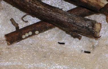 (参考) カミソリで開けた卵と孵化した幼虫 2012年2月21日撮影 兵庫県中西部 採卵 静岡市駿河区 飼育 孵化しない卵が多いので、死んでいるのか心配でカミソリで上部を切ってみると中には黒い幼虫が見えました。しかし全く動きません。しばらくほっておいたところ2日後に幼虫が出てきてくれました。 トップページへ |
