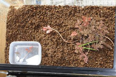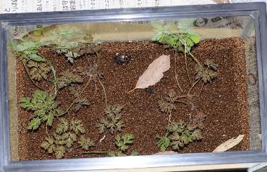(参考) 幼虫の管理 2012年2月18日撮影 兵庫県中西部 採卵 静岡市駿河区 飼育 幼虫の管理の重要なポイントは日光といわれます(これもO氏による)。実際、まだ僕は見ていませんが自然状態の幼虫は枯葉などの上で日光浴をしているそうです。そこで秋に鉢植えにして冬葉が伸び始めているムラサキケマンをガラスの水槽に移植し、そこに幼虫を付けることにしました。最初は密閉容器で飼い始めたのですが方針を変えました。とりあえず葉を囓っているようですが、あまり続かず何か嫌そうです。 トップページへ |