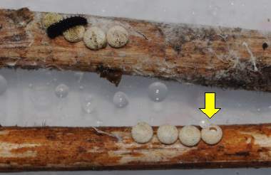 ![]() ↑透けて見える繭の中の前蛹 ![]() |