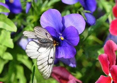 (参考) 吸蜜(マーガレット、パンジー) 2013年5月18日 静岡県榛原郡川根本町(大井川水系上流) このあたりでも鹿害がひどいようで、あまり下草はありませんが一部ムラサキケマンが残っているようで、ウスバシロチョウが優雅に庭先の花々で吸蜜していました。 トップページへ |