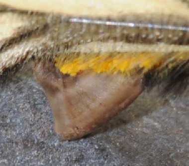 (参考) 羽化した成虫(♂)と交尾器 2012年5月3日 撮影 兵庫県中西部 採卵 静岡市駿河区 飼育 別個体3:羽化を観察できませんでしたが、無事通常の模様の♂が羽化しました。ただし後翅に不全があります。尾端を見ると♂というのが分かります。砂糖水を飲ませています。 トップページへ |