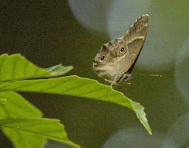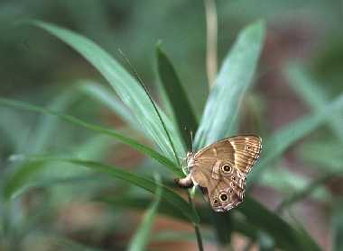 2002年6月15日 大阪府豊中市服部緑地公園 雑木林の下草の笹類に産卵中の♀です。服部緑地公園には下草を残して管理している雑木林があります。このような場所は非常に貴重で、ヒカゲチョウをはじめとした雑木林の昆虫が多く見られます。 トップページへ |