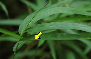 ヒカゲチョウの食痕 2003年6月21日 大阪府豊中市服部緑地公園 幼虫の食痕です。 トップページへ |
