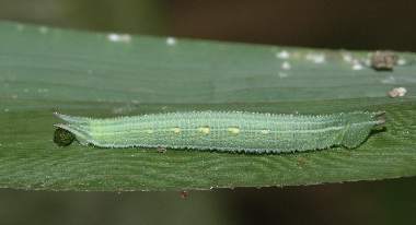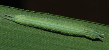 ヒカゲチョウの幼虫(4齢、21mm、模様有り)
