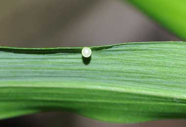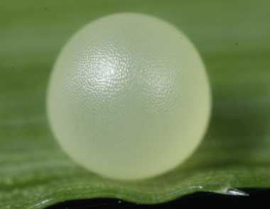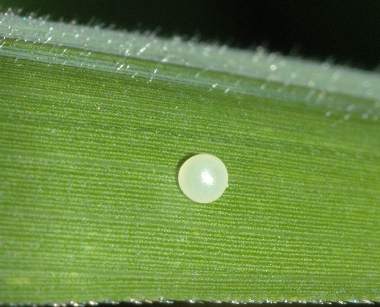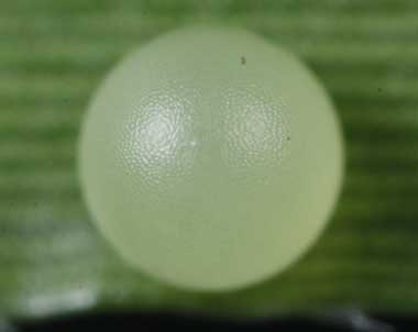 ヒカゲチョウの卵(直径1.2mm、ササ類)