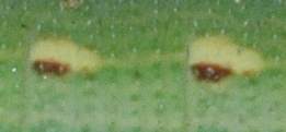 ヒカゲチョウの卵 2006年6月18日 大阪府豊中市服部緑地公園 雑木林の下草の笹類の葉裏で見つけた、産卵間もない(1〜2日?)卵とそのササです。直径1mmぐらい。上の産卵シーンの卵ではありません。 トップページへ |