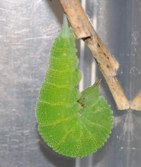 2006年8月7日22:01 大阪府豊中市服部緑地公園産 大阪市淀川区飼育 密閉容器の中で飼育していますが、首尾良く葉裏で前蛹になりました。 トップページへ |