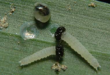 幼虫(左:2齢、右:1齢)