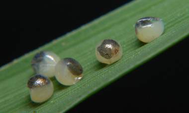 孵化直前のコジャノメの卵(1.0mmΦ、イネ科)
