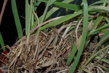 2010年5月31日 静岡市駿河区大谷 100均で買った洗濯網の中に、イネ科(現時点で種名不明)の鉢植えと、サトキマダラヒカゲ用のササの鉢植えを一緒に入れています。ササの鉢は写っていませんがこちらには、コジャノメの食草であるチヂミザサも植えてあります。この写真には1匹しか写っていませんが、2♀入れています。2日後には、矢印の位置や他の位置に卵が20卵程度、チヂミザサに18卵の卵塊がありました。保育社の生態図鑑等に依れば、本来の食草はチヂミザサだけです。また、卵塊では産みませんので、このような人工的環境による異常産卵です。 トップページへ |