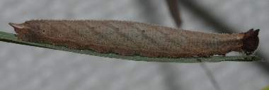 2010年6月17日夜撮影 静岡市駿河区 飼育 静岡市駿河区大谷 母蝶採集 尾部にも1齢の時から2本の突起があり、これは頭部の擬態と言われています。3齢になり、頭部が黒色から褐色になりました。 トップページへ |