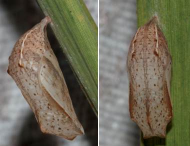 (参考) クロヒカゲの蛹 2008年11月04日 兵庫県猪名川町 産 大阪市淀川区 飼育 11月2日に蛹化し、これはその2日後です。 トップページへ |