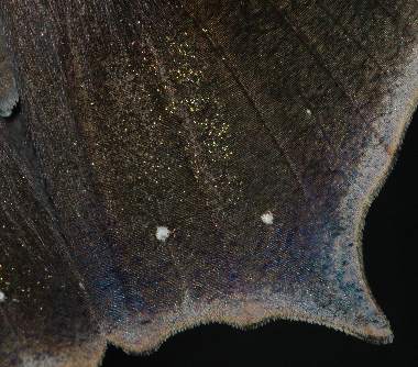 (参考) 羽化後間もないウスイロコノマチョウ 2005年8月23日 大阪府豊能町 産 大阪市淀川区 飼育 個体1:先に羽化した個体1です。模様は個体2と似ていますが白い紋の位置など少し違います。後翅表面もよく見ると、金粉があしらわれているようできれいです。 トップページへ |