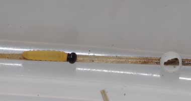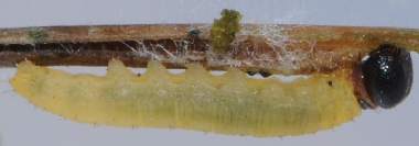 (参考) 孵化後間もないアカセセリの幼虫(1齢、2.4mm、ホソバヒカゲスゲ?) 2013年9月6日昼 撮影 長野県の高原 採卵 静岡市駿河区 飼育 昼に見ると孵化して既に歩いていました。今までに見たセセリチョウの幼虫と比べると随分黄色です。 トップページへ |