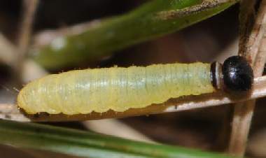 (参考) 摂食中のアカセセリの幼虫(4齢、ヒカゲスゲ) 2016年5月8日 撮影 長野県の高原 母蝶採集 静岡市駿河区 飼育 密閉容器越しで撮影して画像処理したため、汚い写真になりましたが、葉の中ほどを食べている様子を撮影できました。この後、葉の先は落下してしまいます。このような食べ方になるのは、天敵に見つからないようにするため体を巣の外に出さないようにしているためではないでしょうか。 トップページへ |