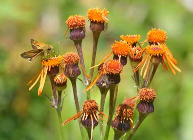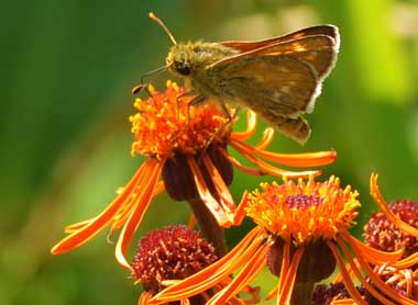 (参考) アカセセリの吸蜜(♂、コウリンカ) 2015年8月15日 長野県の高原 既に最盛期は過ぎていて産卵も見られたのですが、わずかに♂も見られ、吸蜜や求愛が見られました。コウリンカは草原の花で、色合いがアカセセリに似ていて絵的にはイマイチですが、高原の蝶と花の組み合わせが気に入っています。コウリンカはその花びらが特徴的で気に入っているのですが、花びらのない株があり、よく見ると何かの幼虫が食べてしまったようです。 トップページへ |