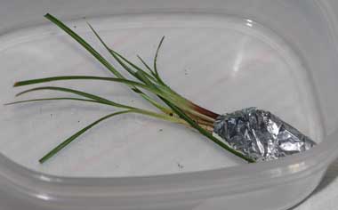 (参考) 飼育の状態と脱皮後少し成長したアカセセリの幼虫と巣(4齢、16.8mm、ヒカゲスゲ) 2016年5月13日 撮影 長野県の高原 母蝶採集 静岡市駿河区 飼育 鉢植えにしたヒカゲスゲから少しずつ根元からはさみで切り出して濡らしたティッシュとアルミ箔で包んで密閉容器に入れて飼っています。幼虫はその狭い株の中に巣を作って潜んでいます。巣を持ち上げてみると巣の後方下部には糞がいっぱいたまっていました。巣の葉先側は開いていておそらくここから頭を出して周りの葉を食べているのでしょう。巣から出てきてくれないので、巣を開けて中の様子を見てみました。巣の中の後方にも糞がいっぱいたまっていました。巣の上部は密に糸が吐かれていてそちらに捕まって静止しています。 トップページへ |