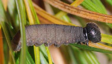 (参考) 脱皮後少し成長したアカセセリの幼虫と巣(5齢、19.8mm、ヒカゲスゲ) 2016年5月19日 撮影 長野県の高原 母蝶採集 静岡市駿河区 飼育 5齢頭部には白い筋がはっきり見えます。体色は5齢になってますます黒っぽくなりました。成長はあいかわらず遅いです。 トップページへ |