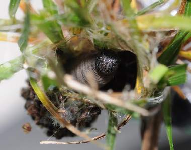 (参考) 巣と幼虫(3齢、7.6mm、ホソバヒカゲスゲ?) 2013年9月29日 撮影 長野県の高原 採卵 静岡市駿河区 飼育 近所のホソバヒカゲスゲ?は少し囓った跡もあり、また成長もしているようなのですが、全く落ち着かず、鉢から逃亡してしまいます。そこで、別の高原から持ち帰っていたヒカゲスゲと思われる鉢に移してみました。しかし結局ここでも落ち着きませんでした。その結果移動移動で体力を消耗してしまったのか死亡してしまいました。 トップページへ |