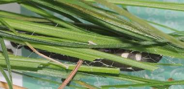 (参考) アカセセリの巣と幼虫(3齢、6.1mm、ホソバヒカゲスゲ?) 2013年9月29日 撮影 長野県の高原 採卵 静岡市駿河区 飼育 ホソバヒカゲスゲのほとんどの葉が枯れたので、近所の山からとってきたホソバヒカゲスゲと思われる草に移すため、巣を観察した後、幼虫を取り出して写しました。 トップページへ |