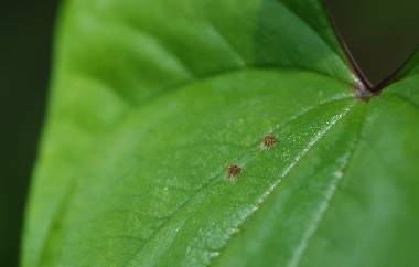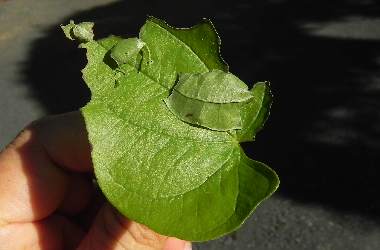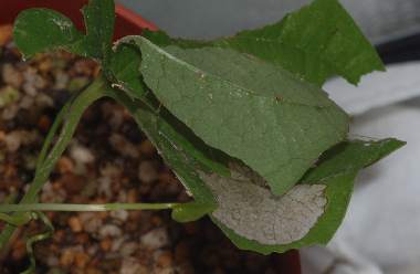 ![]() ↑巣の葉の葉柄。糸がない。 |