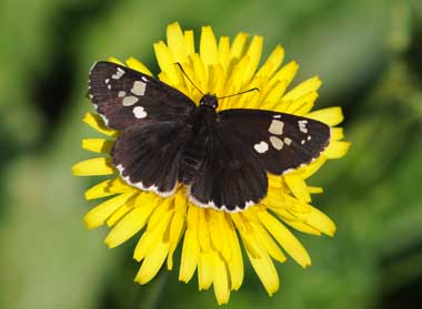 2014年4月27日 静岡市駿河区大谷 春本番を迎え、羽化直後と思われる非常にきれいな個体がタンポポで吸蜜していました。ダイミョウセセリは翅を開いて止まるというイメージを持っていましたが、全開での吸蜜は少なく、閉じて吸っているときがほとんどでした。羽化後間もない時はそうするのかもしれません。 トップページへ |