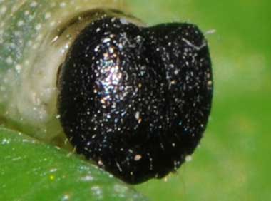 ダイミョウセセリの幼虫(2齢、4.0mm、オニドコロ) 2016年5月19日 撮影 静岡市駿河区大谷 産 静岡市駿河区 飼育 同じ巣ですが、頭部の形が変わっておりいつのまにか脱皮して2齢になったようです。 トップページへ |
