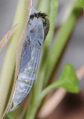 (参考) ホシチャバネセセリの前蛹(20.0mm、ススキ) 2017年5月14日 撮影 長野県 産 静岡市駿河区 飼育 個体1:前蛹になる前に、しっかり糸を吐いていました。 トップページへ |