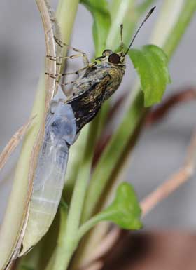 (参考) 静止(♀) 2012年8月4日 山梨県(富士山麓) ♀では、裏面の白い斑紋が明瞭です。 トップページへ |