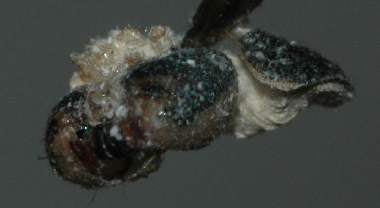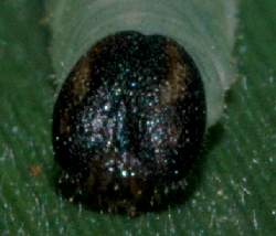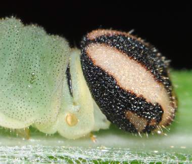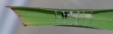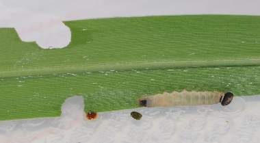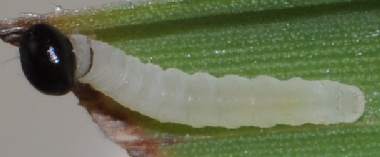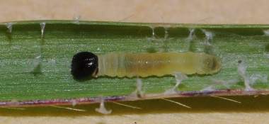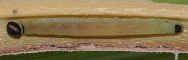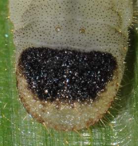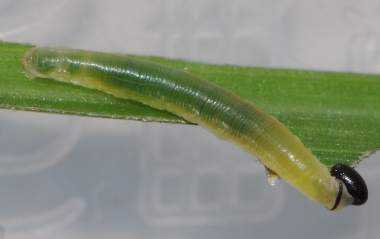 脱皮後間もない幼虫(2齢、3.6mm、ススキ類)
