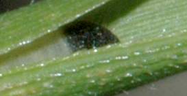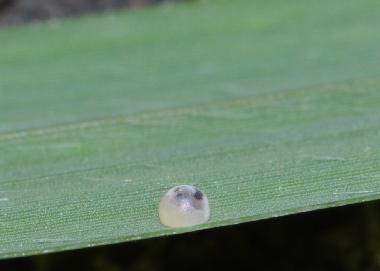 孵化間近のキマダラセセリの卵と環境(ススキ)