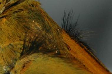 2005年8月19日07:09am 大阪府豊中市服部緑地公園産 大阪市淀川区飼育 羽化直後のキマダラセセリです。黒い毛が生えています。 トップページへ |