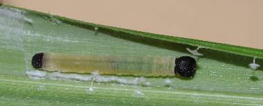 脱皮後少し成長した幼虫(2齢、5.8mm、ススキ類)
