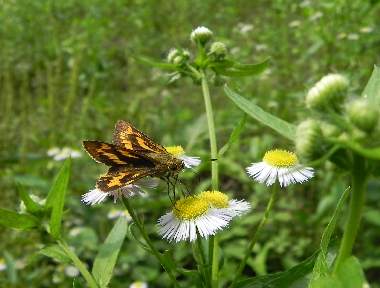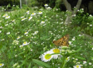2013年6月30日 静岡市駿河区大谷 咲き乱れるヒメジオンで数匹のキマダラセセリが吸蜜していました。丁度最盛期なのでしょう。5匹以上のキマダラセセリを同じ日に見たのは初めてです。 トップページへ |