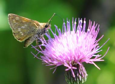 (参考) 吸蜜(ノアザミ)と静止(♀) 2013年8月12日 長野県の高原 コキマダラセセリはアザミやヒメジオンなど、いろんな花で吸蜜します。 トップページへ |